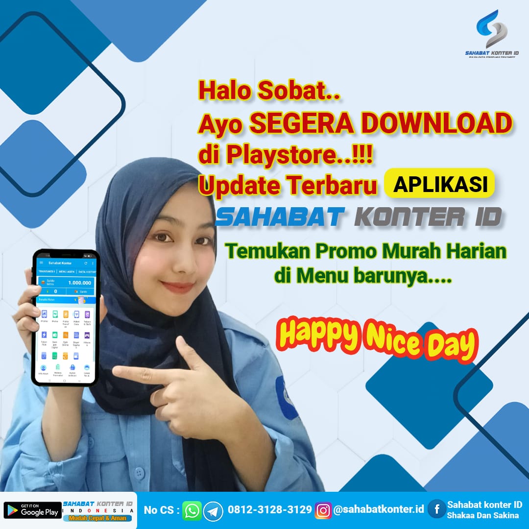 Unduh aplikasi Sahabat Konter ID di Google Play Store untuk kemudahan akses layanan kami.