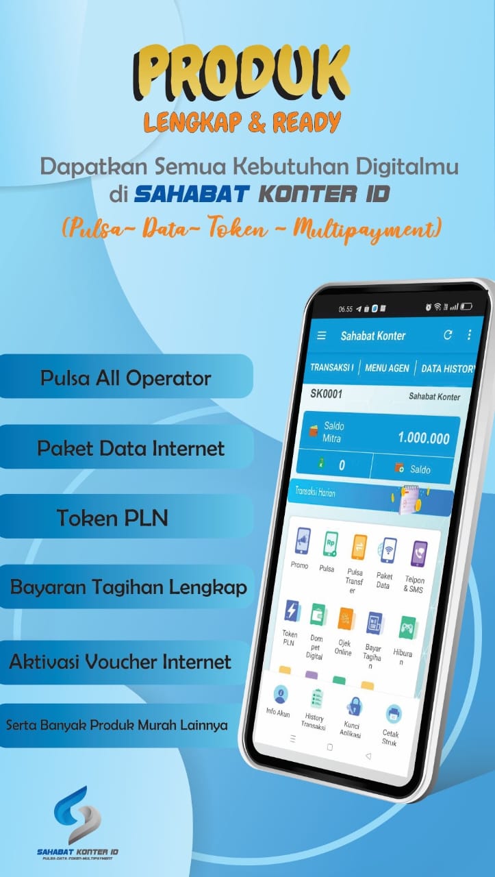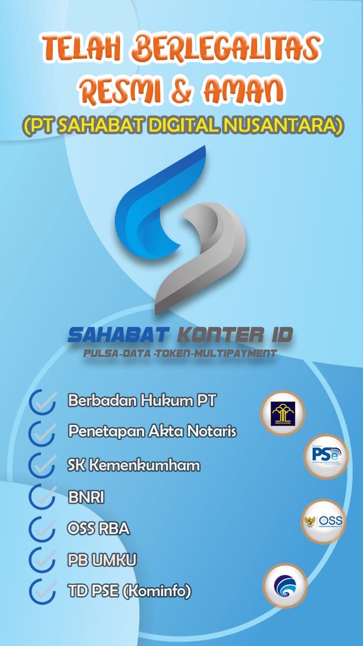 Sahabat Konter ID adalah perusahaan yang bergerak dibidang distribusi dan jasa. Menyediakan pulsa lengkap all operator, paket internet, token PLN, berbagai macam pembayaran tagihan, top up saldo e-wallet, top up permainan / game online, top up saldo ojek online dan banyak produk lainya. Perusahaan yang sudah berlegalitas resmi a/n PT. Sahabat Digital Nusantara.